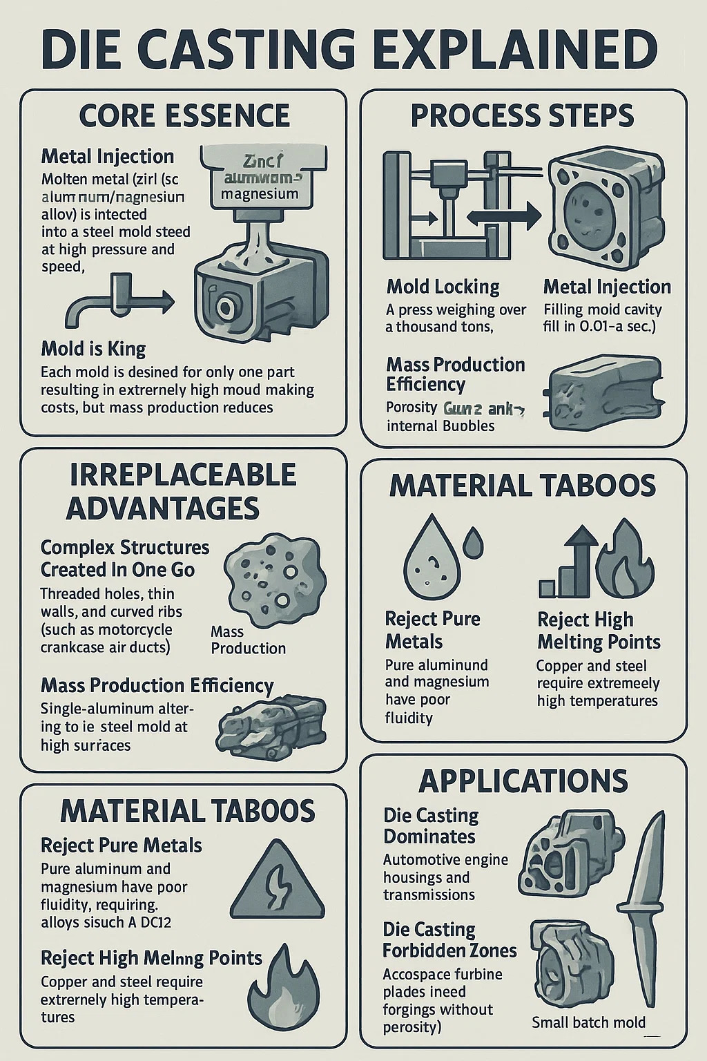 Ablehre reine Metalle: reines Aluminium und Magnesium weisen eine schlechte Fluidität auf und erfordert Legierungen (wie ADC12 -Aluminium mit 10% Silizium).